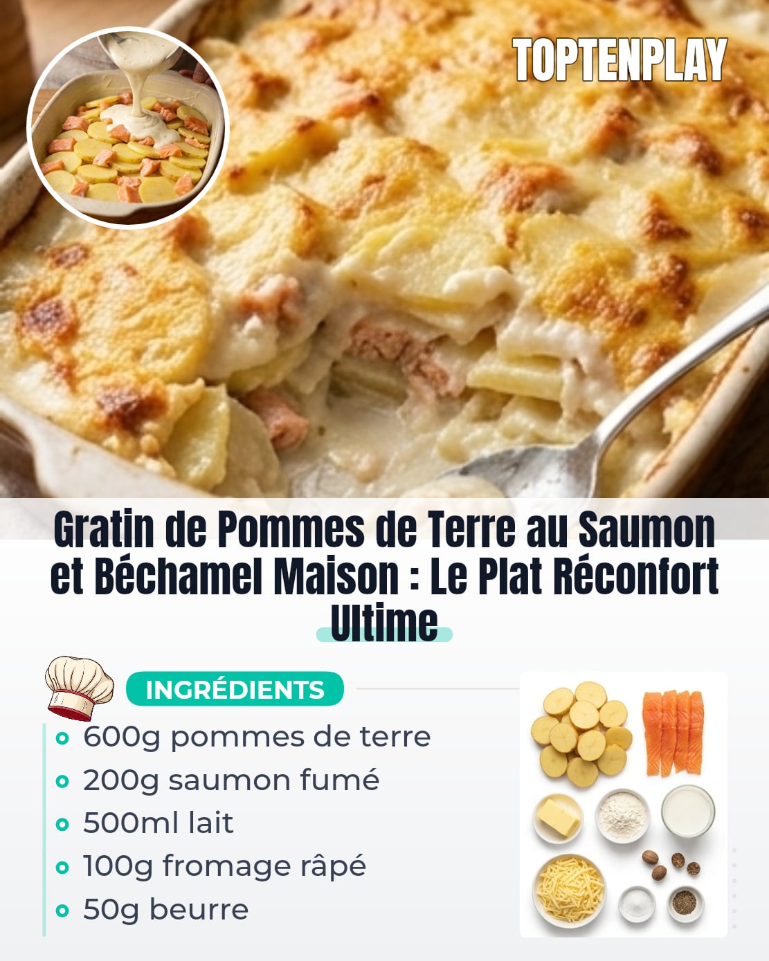 📌 Gratin de Pommes de Terre au Saumon et Béchamel Maison : Le Plat Réconfort Ultime