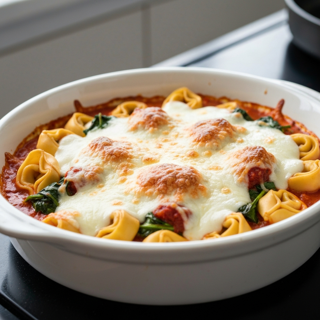 Tortellini cuit au four avec épinards