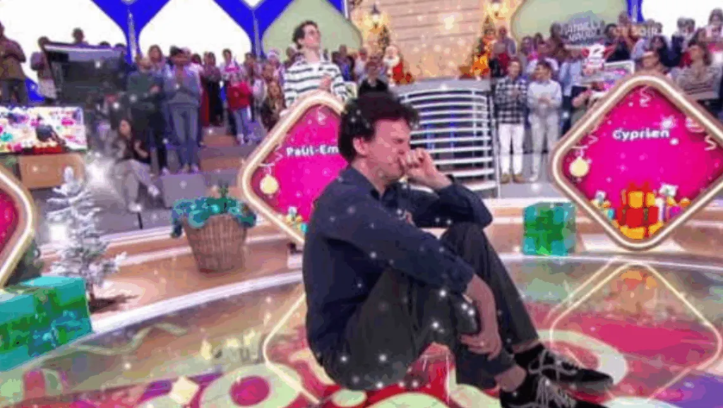 La réaction est immédiate et bouleversante. Cyprien reste figé, puis s’effondre, les mains sur le visage, incapable de retenir ses larmes. Le plateau entier bascule dans une émotion collective rare. Dans le public, certains spectateurs pleurent, d’autres applaudissent, tous conscients d’assister à un moment hors norme.