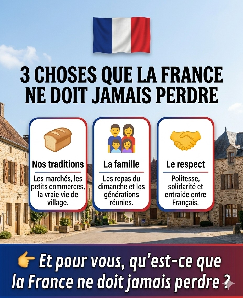 La France, ce n’est pas seulement un pays… c’est aussi un héritage et des valeurs. 🇫🇷 Les petits villages, les marchés, les repas en famille et le respect entre voisins. Des choses simples qui ont façonné des générations entières. Et qui méritent de continuer à vivre encore longtemps. 🤝👨👩👧👦🥖